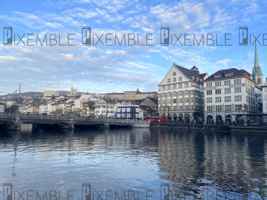 Limmat waterfront in Zurich, Switzerland